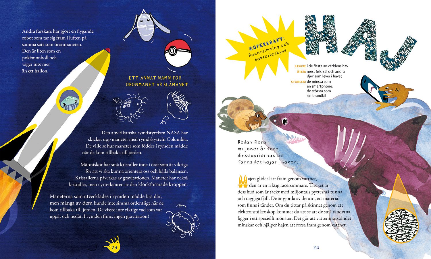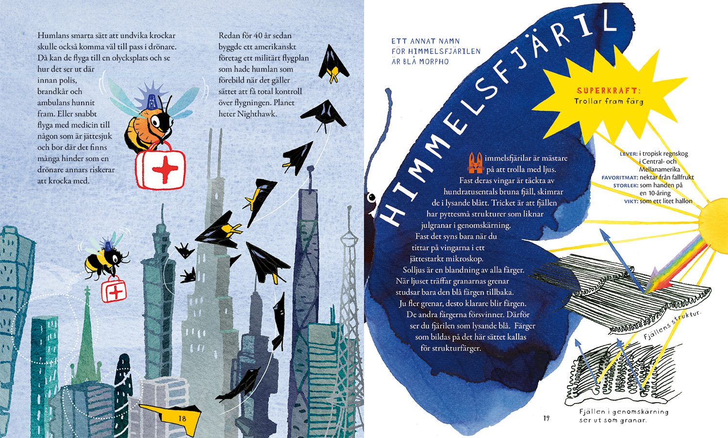 Kolibri ur Djur med superkrafterKolibrin som förebild för teknik och uppfinningar, ur Djur med superkrafterKungsfiskare och ljudlös framfart, ur Djur med superkrafterHumla och absolut flygkontroll, ur Djur med superkrafterHumla och himmelsfjäril ur Djur med superkrafterÖronmanet och förmågan att hålla ihop ur Djur med superkrafterManet och haj ur Djur med superkrafterHajens egenskaper och inspiration ur Djur med superkrafterDelfin och björndjur ur Djur med superkrafterAxolotl och förmågan att återskapa sig själv, ur Djur med superkrafterSpindel och superstarka trådar ur Djur med superkrafterTermiter och naturlig luftkonditionering ur Djur med superkrafterDyngbagge navigerar efter stjärnorna ur Djur med superkrafterMänniskan och förmågan att härma djurens superkrafter ur Djur med superkrafter